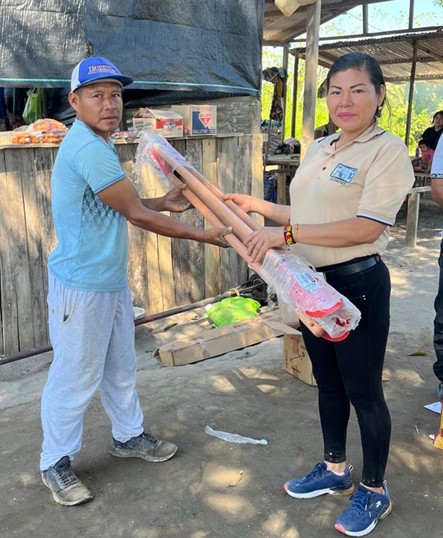Apu Rolando bei der Übergabe von Hilfsgütern in Nuevo Bélgica